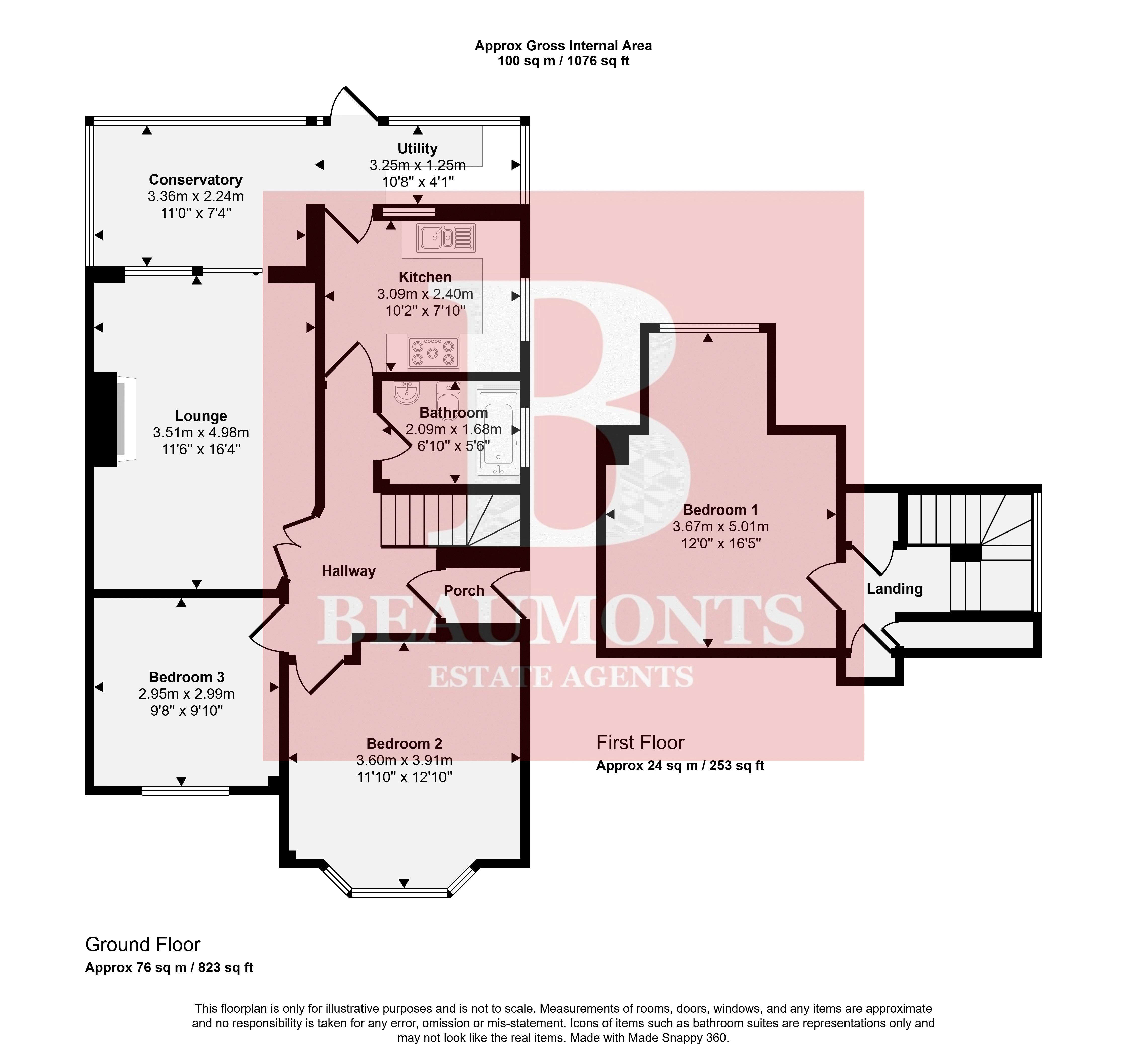 GROUND FLOOR: Entrance Hall * Living room * Conservatory * Two Bedrooms * Modern Kitchen * Modern Bathroom * Conservatory *