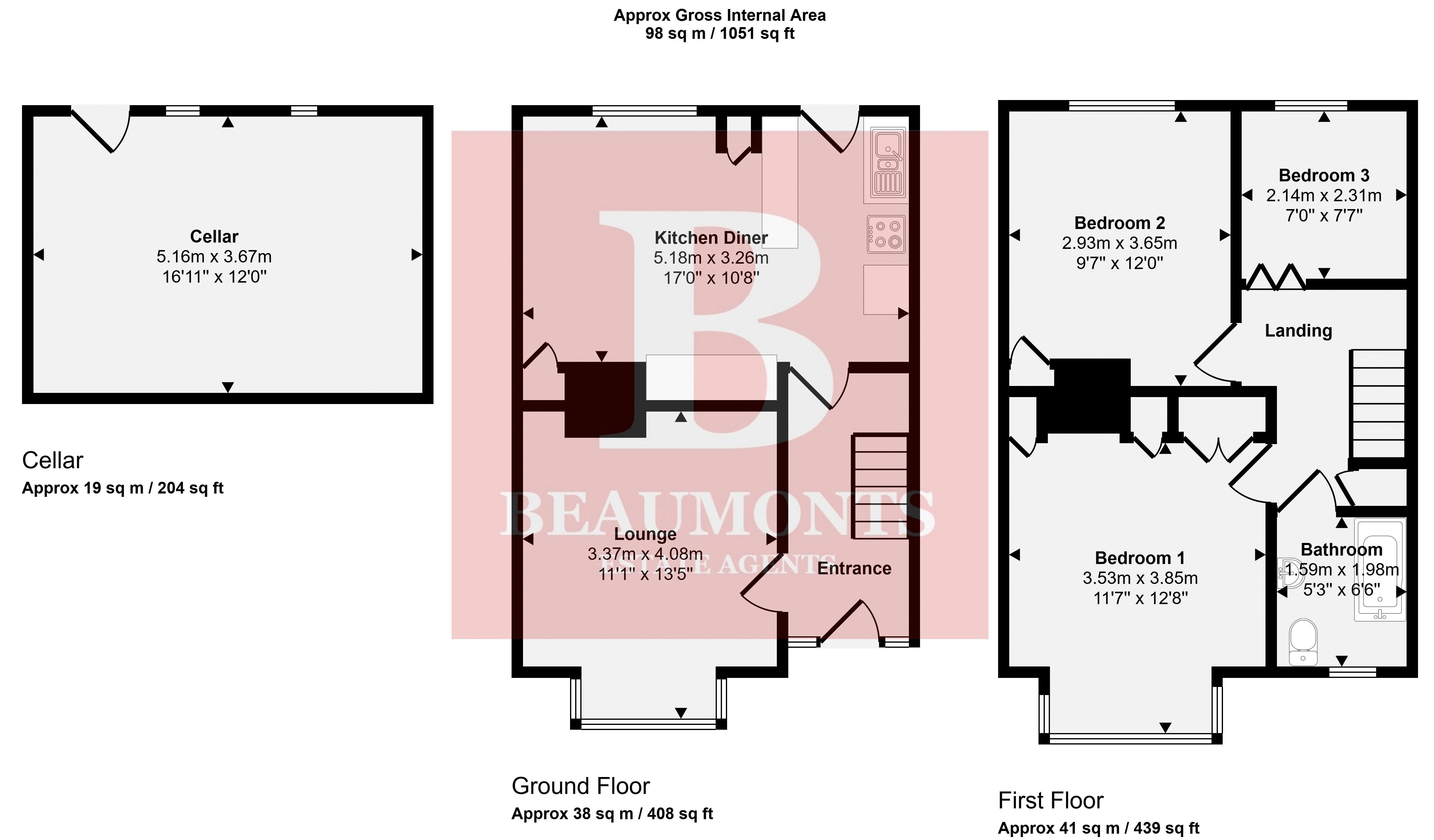 - Three good sized bedrooms on the first floor