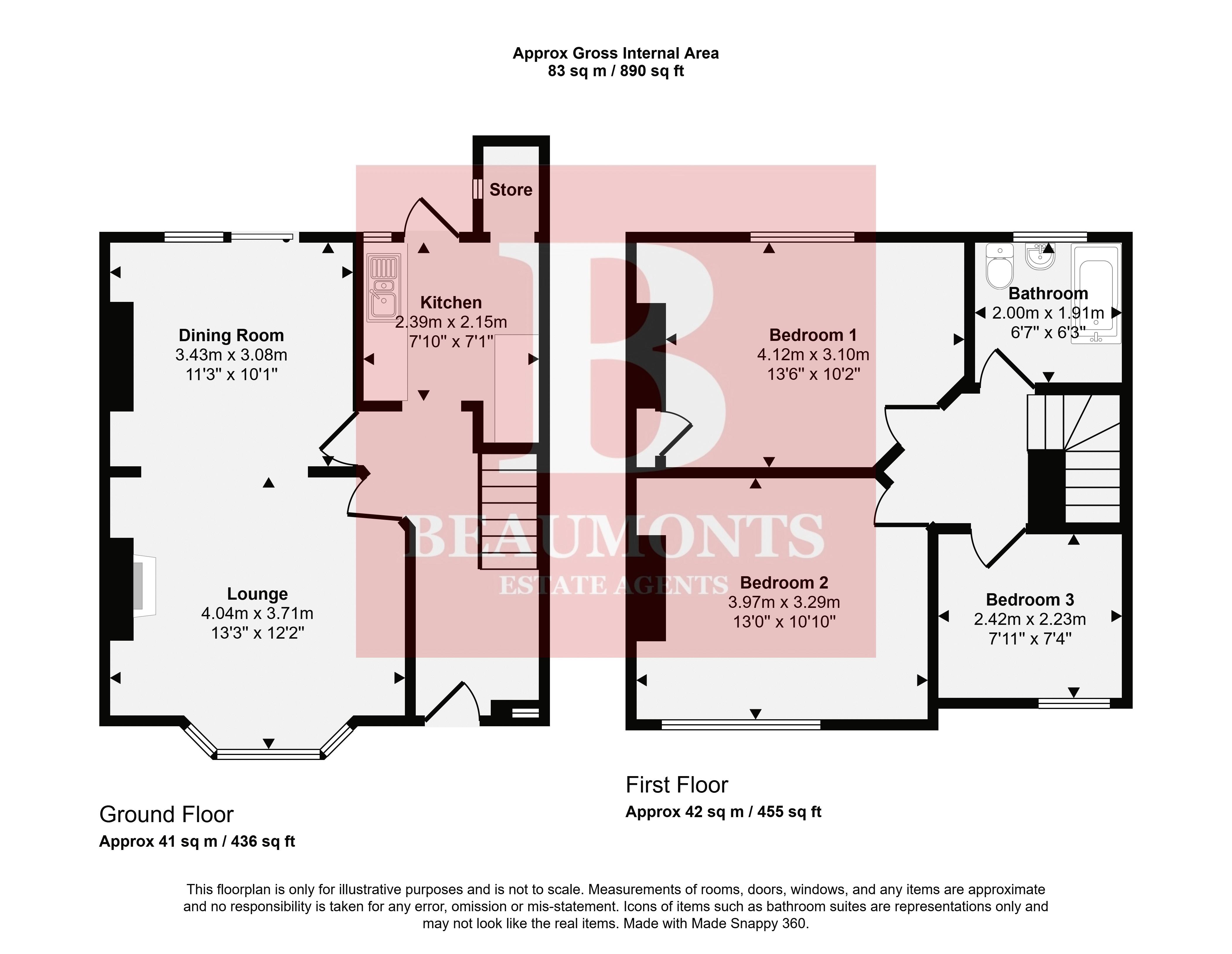 First Floor: Three double bedrooms * Bathroom